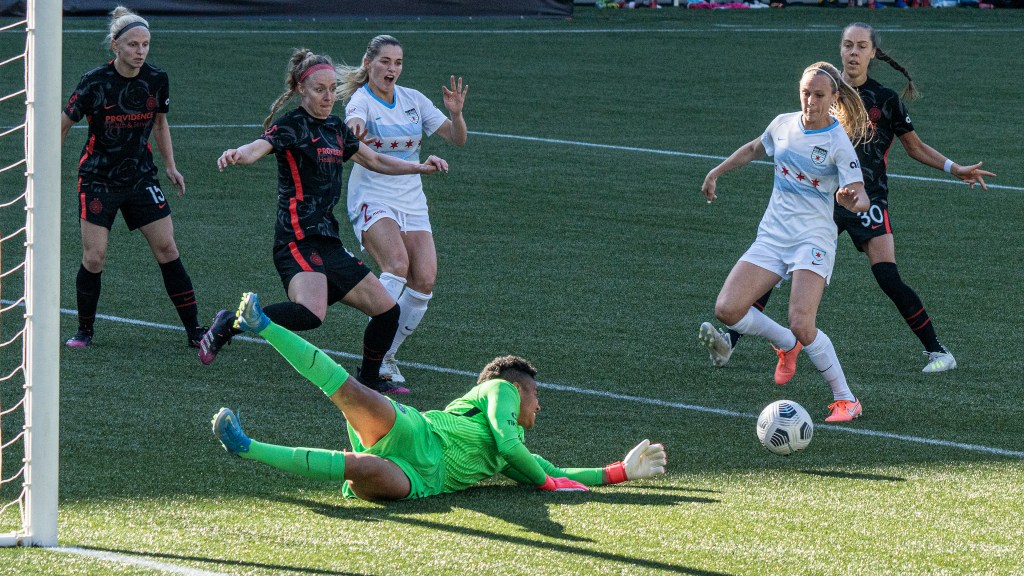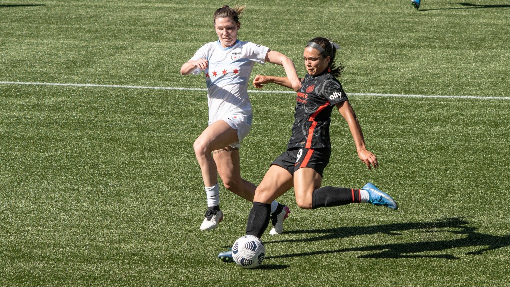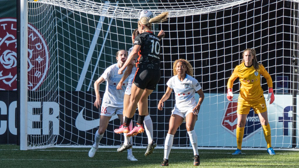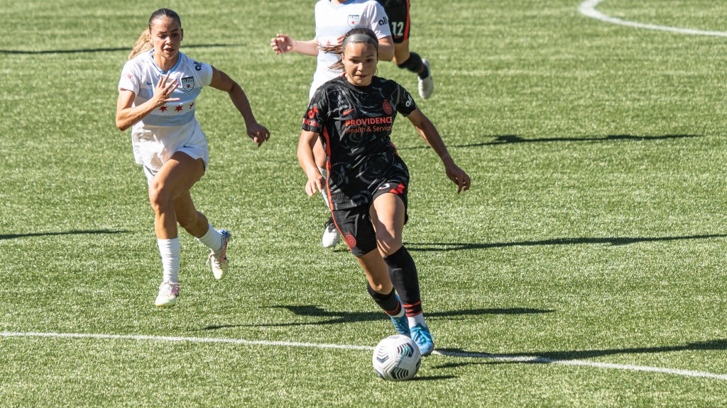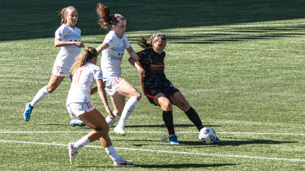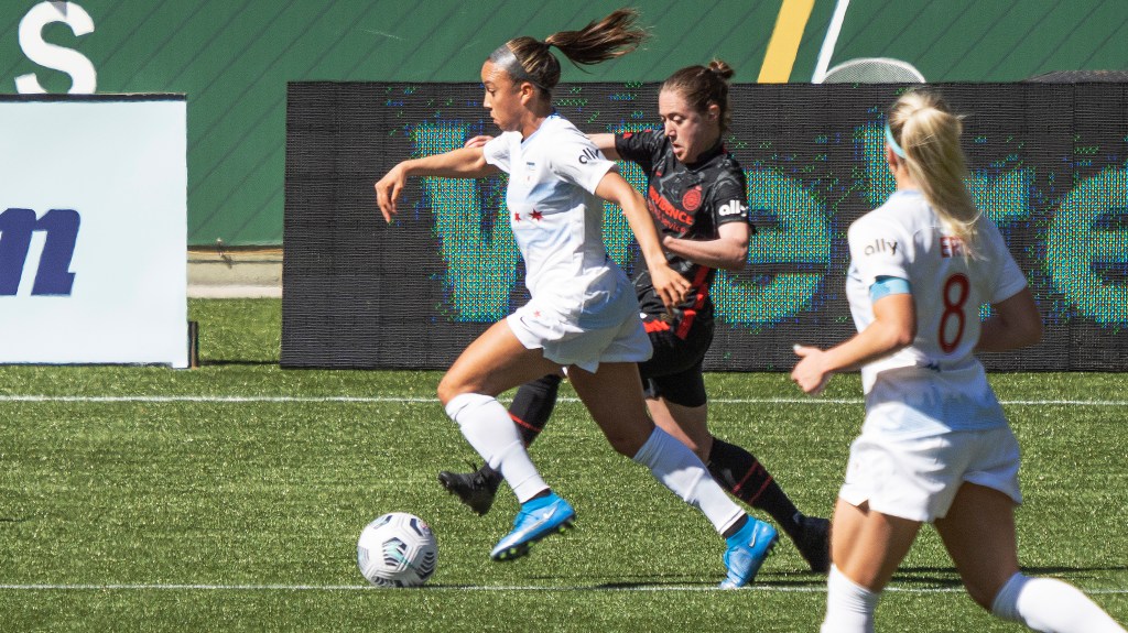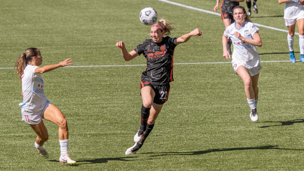 Sophia Smith proved relentless up front during Portland’s home opener against Chicago (Photo by Jeff Wong/Honeyball Soccer)