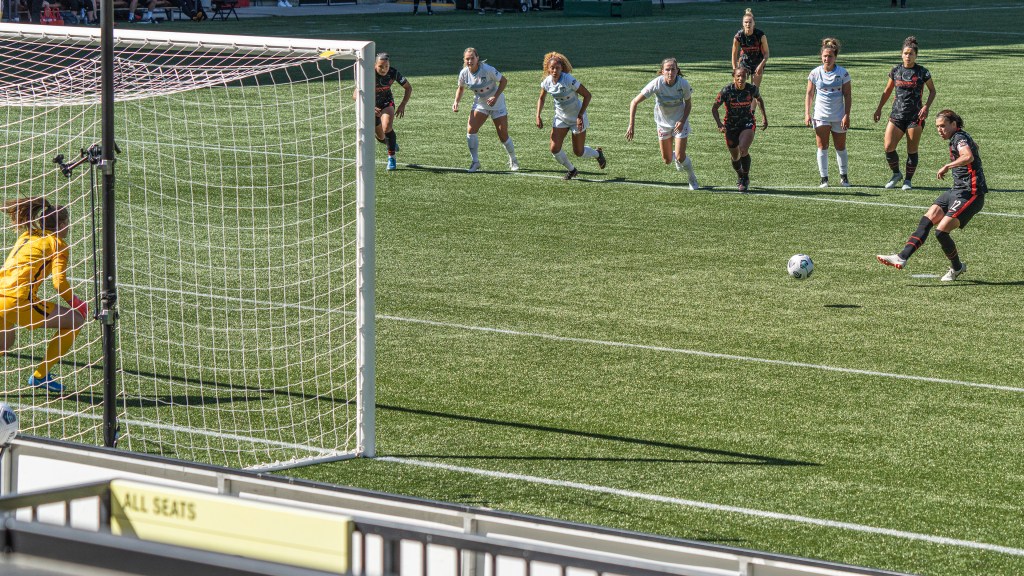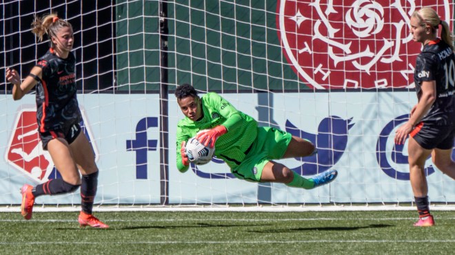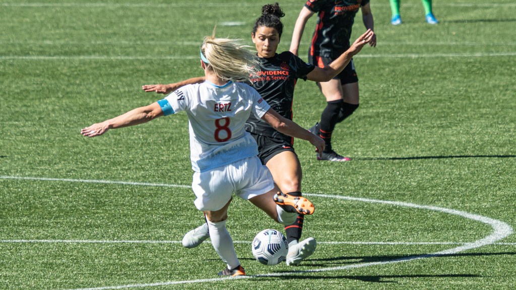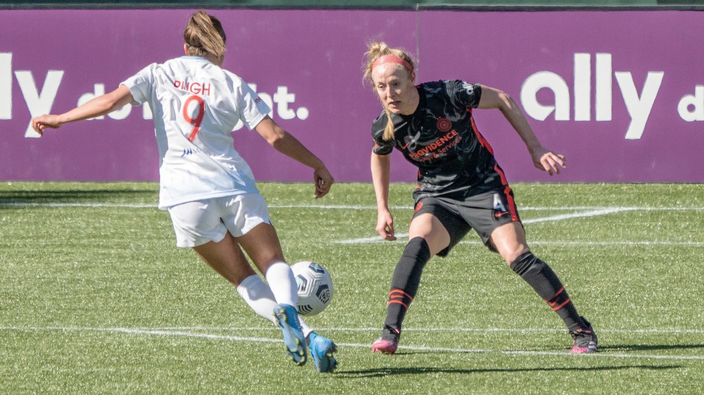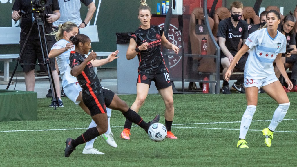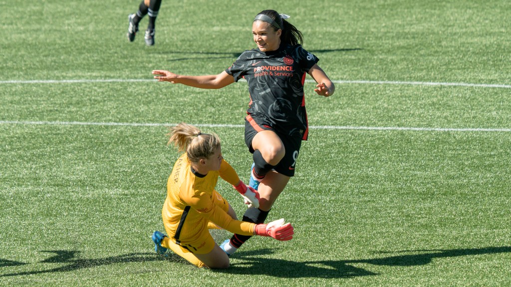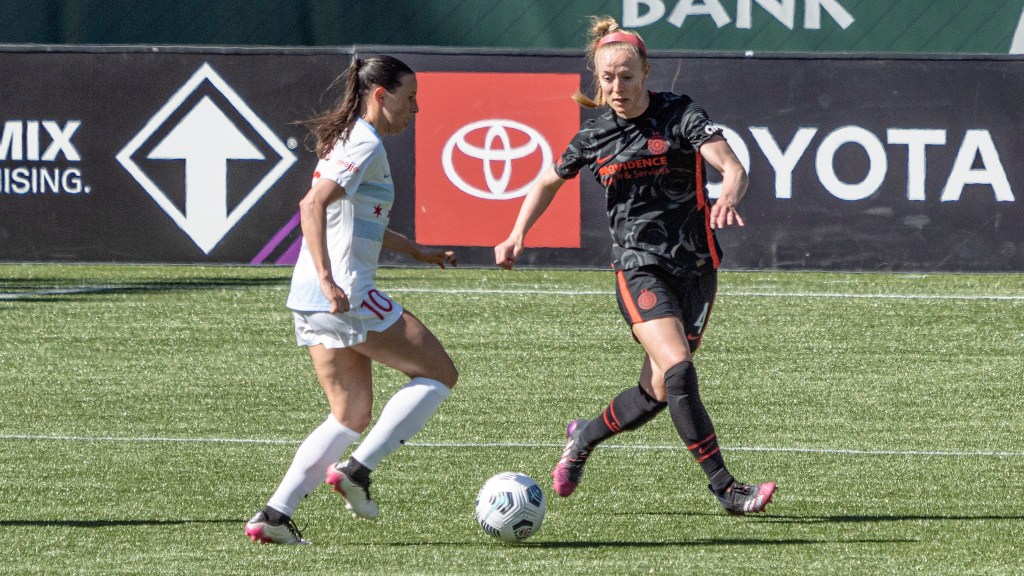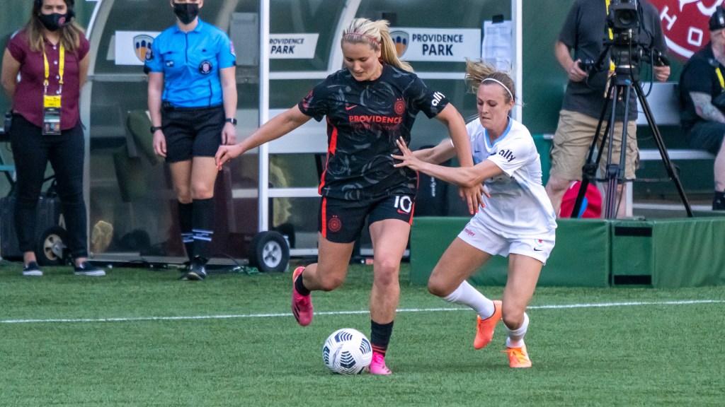 Sophia Smith proved relentless up front during Portland’s home opener against Chicago (Photo by Jeff Wong/Honeyball Soccer)