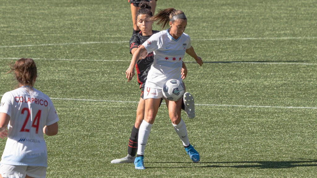 Crystal Dunn sets up the play against Chicago (Photo by Jeff Wong/Honeyball Soccer)