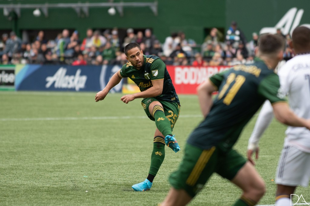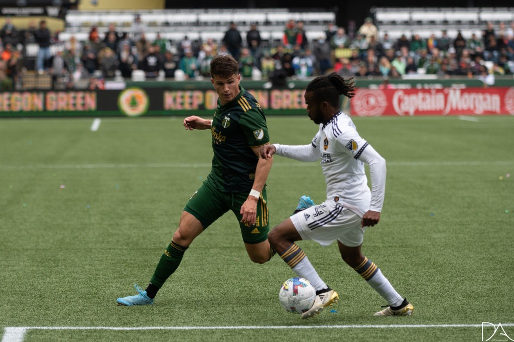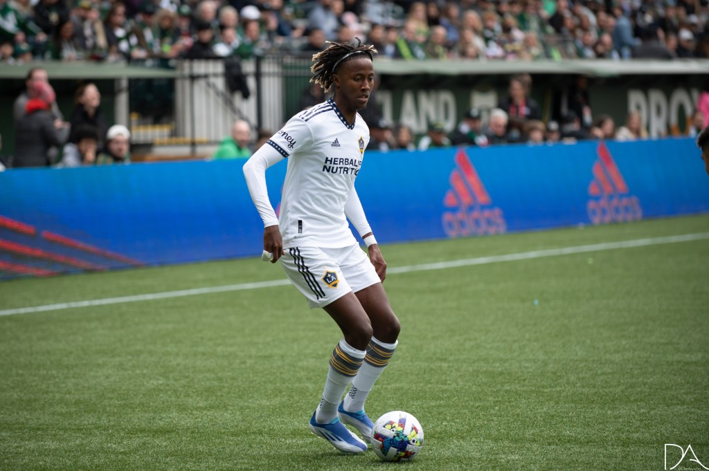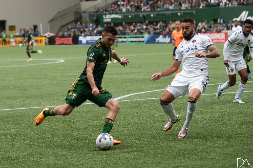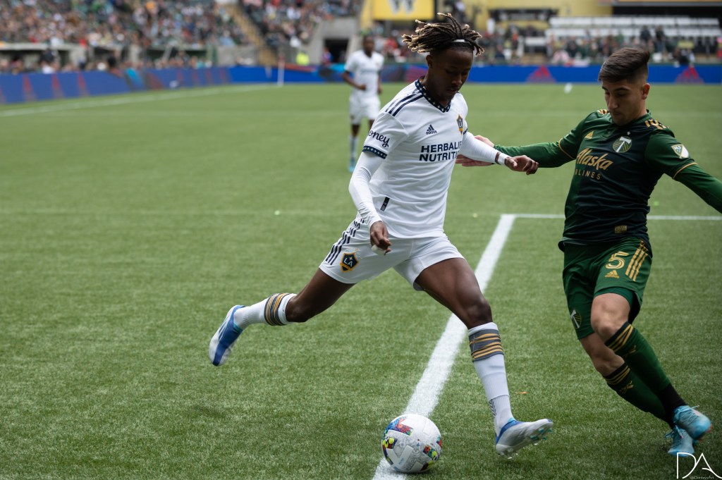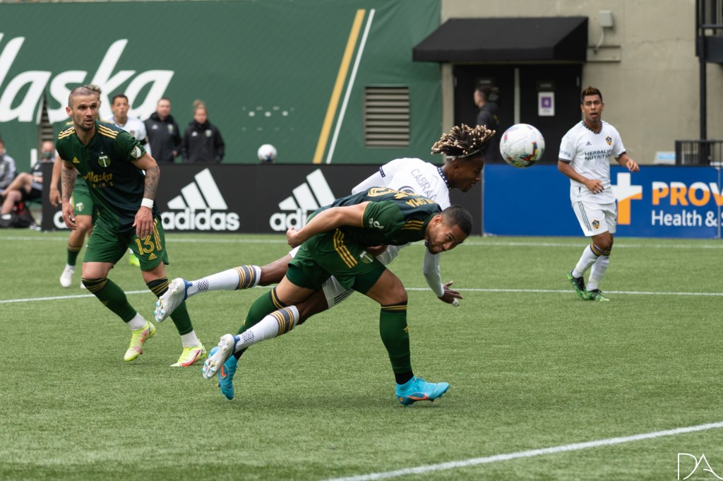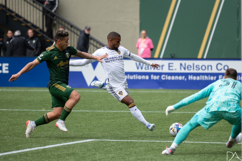 during the Major League Soccer game between Portland Timbers v LA Galaxy at Providence Park in Portland, Oregon.Kévin Cabral (9 LA Galaxy)