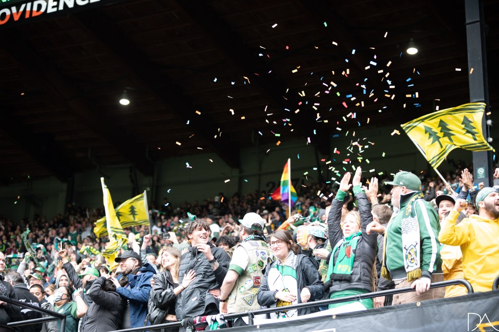 celebrating his goal during the Major League Soccer game between Portland Timbers v LA Galaxy at Providence Park in Portland, Oregon.