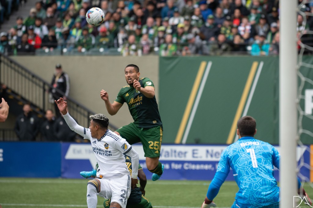 during the Major League Soccer game between Portland Timbers v LA Galaxy at Providence Park in Portland, Oregon.Giovanni Savarese (Head Coach Portland Timbers) watching during the Major League Soccer game between Portland Timbers v LA Galaxy at Providence Park in Portland, Oregon.Mark Delgado (8 LA Galaxy) first yellow card during the Major League Soccer game between Portland Timbers v LA Galaxy at Providence Park in Portland, Oregon.Mark Delgado (8 LA Galaxy) 2nd yellow and ultimate red card during the Major League Soccer game between Portland Timbers v LA Galaxy at Providence Park in Portland, Oregon.Bill Tuiloma (25 Portland Timbers) attempts another freekick goal during the Major League Soccer game between Portland Timbers v LA Galaxy at Providence Park in Portland, Oregon.Justin Rasmussen (14 Portland Timbers) during the Major League Soccer game between Portland Timbers v LA Galaxy at Providence Park in Portland, Oregon.Justin Rasmussen (14 Portland Timbers) during the Major League Soccer game between Portland Timbers v LA Galaxy at Providence Park in Portland, Oregon.Bill Tuiloma (25 Portland Timbers) header during the Major League Soccer game between Portland Timbers v LA Galaxy at Providence Park in Portland, Oregon.Cristhian Paredes (22 Portland Timbers) attempt on goal during the Major League Soccer game between Portland Timbers v LA Galaxy at Providence Park in Portland, Oregon.Javier Hernández (14 LA Galaxy) before the Major League Soccer game between Portland Timbers v LA Galaxy at Providence Park in Portland, Oregon.Kévin Cabral (9 LA Galaxy)