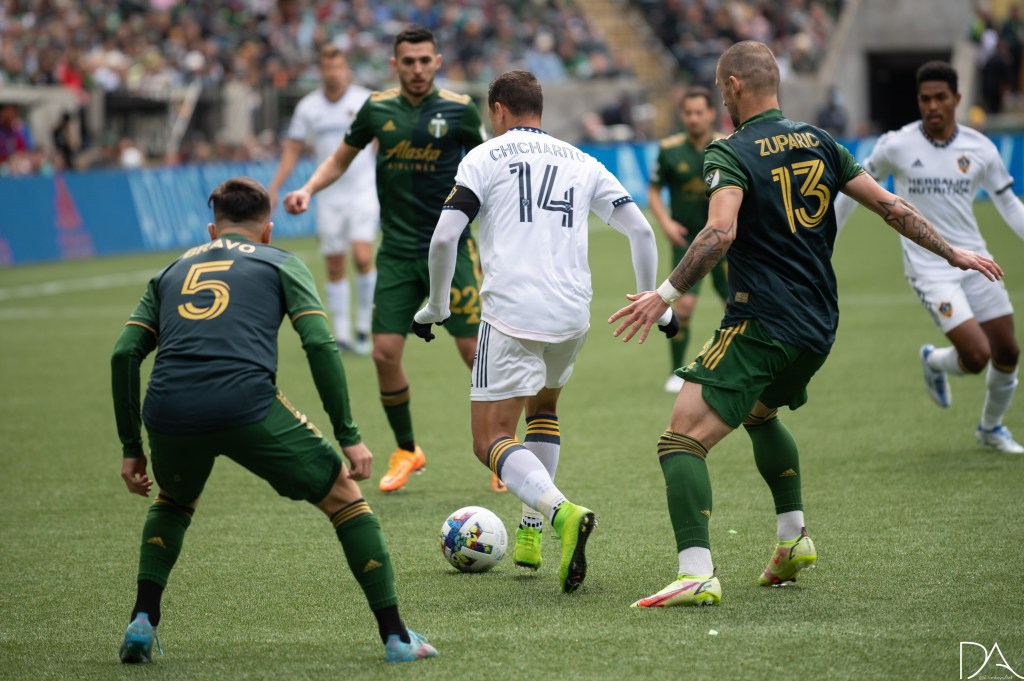 In a chippy game from beginning to end, the LA Galaxy defeated the Portland Timbers 3-1. The Galaxy had consistently strong runs, led by the never aging Chicharito, and were even able to disrupt the Timbers defense enough to force an own goal – scored by Bill Tuiloma in the 16th. It was their second of three goals scored. Bill Tuiloma would also score one for his own side on a beautiful free kick in the 51st. He would be the lone Timber to score in the match.